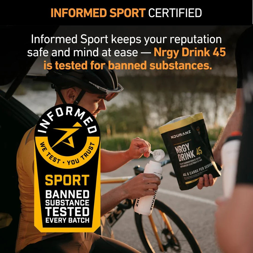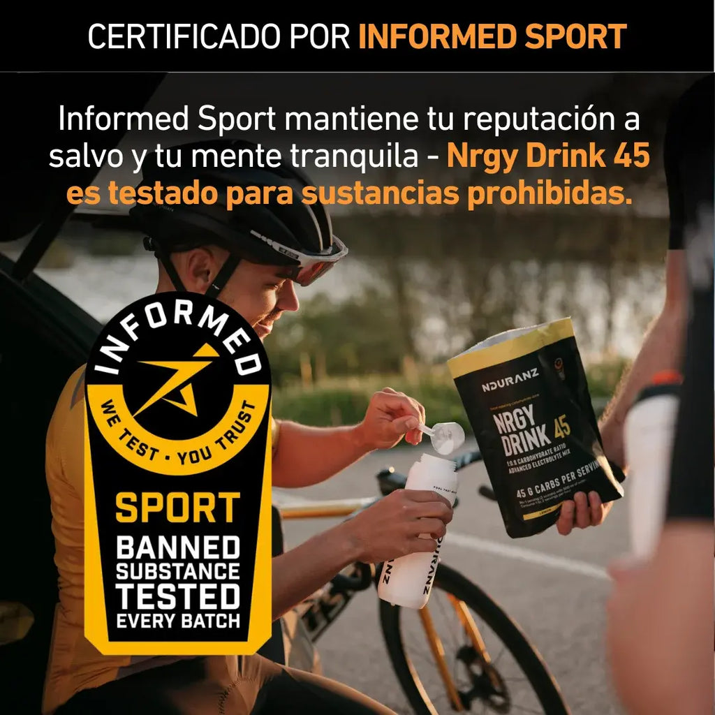Cada lote de Nrgy Drink 45 es analizado para detectar sustancias prohibidas bajo el programa Informed Sport. Esto significa que puedes usarlos sin problema— tu rendimiento se mantiene limpio y tu reputación segura.