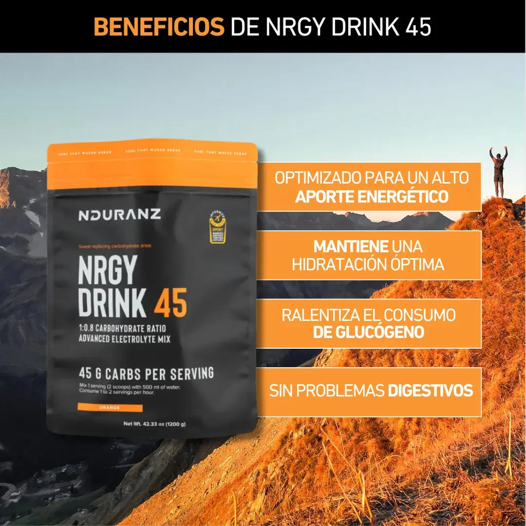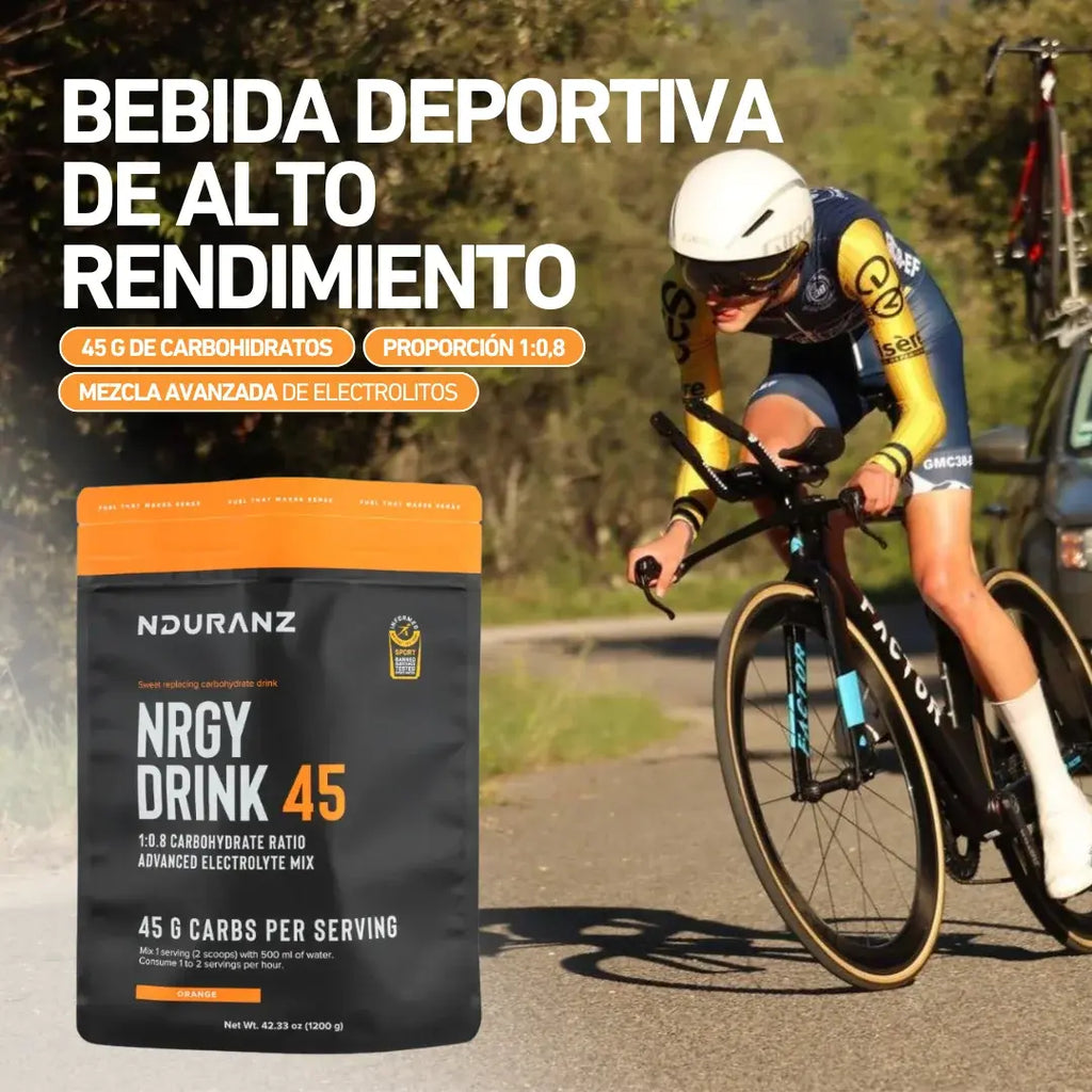 Nrgy Drink 45 es el combustible óptimo para atletas de alto rendimiento que necesitan una alta ingesta de carbohidratos y una hidratación óptima sin ingredientes innecesarios ni problemas digestivos.