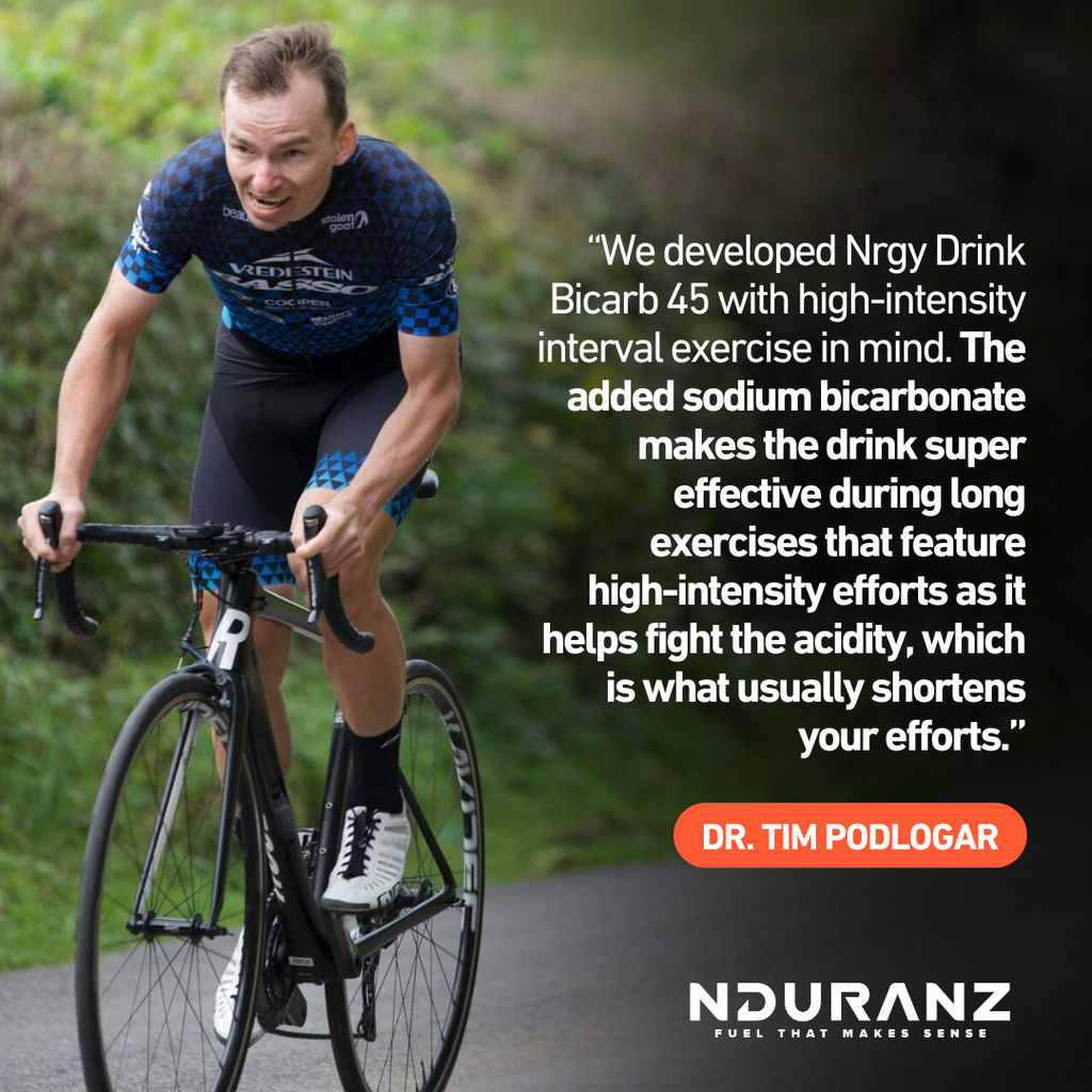 Nrgy Drink Bicarb 45 se basa en la proporción de carbohidratos de Nduranz, una proporción 1:0,8 entre glucosa (maltodextrina) y fructosa.