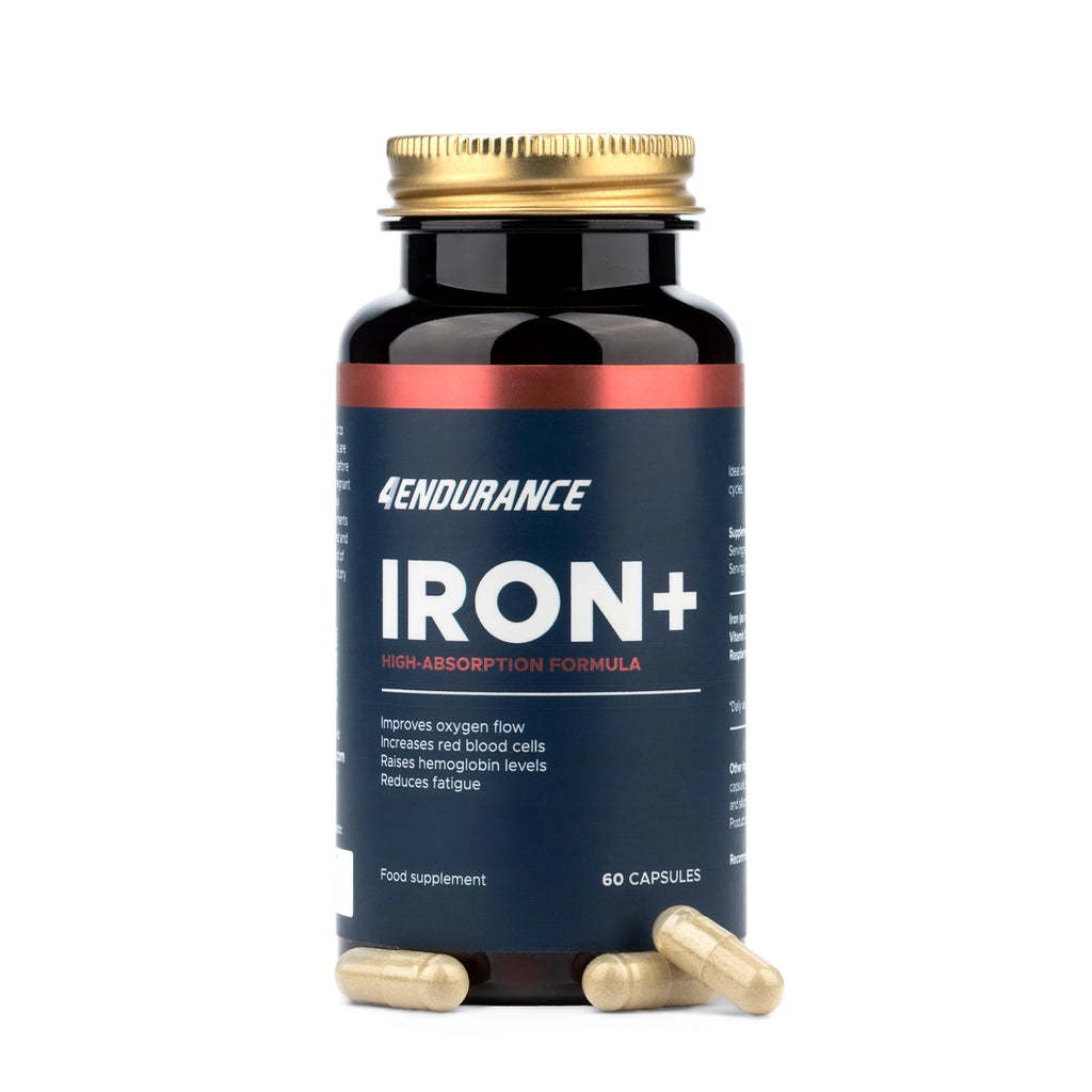 Hierro+ de 4Endurance es un suplemento efectivo para atletas que aumenta el VO2 máx al apoyar la formación normal de glóbulos rojos, lo que mejora el flujo de oxígeno.