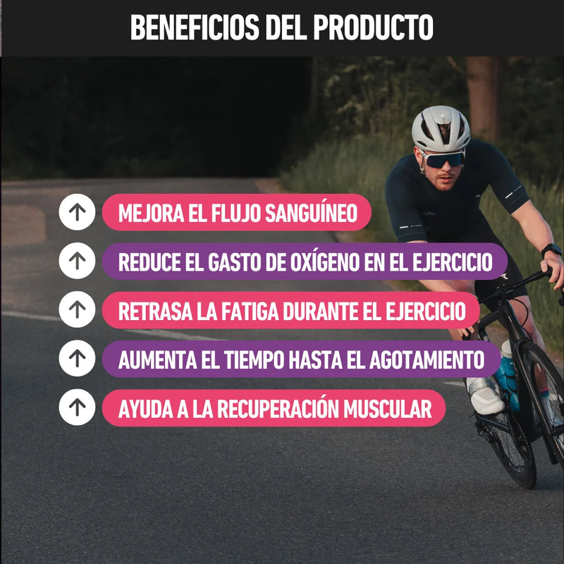 Ya seas ciclista enfrentando subidas exigentes, corredor superando series de velocidad o triatleta buscando mantener la potencia en los kilómetros finales, Nitratos+ te ayuda a rendir más con menos esfuerzo.