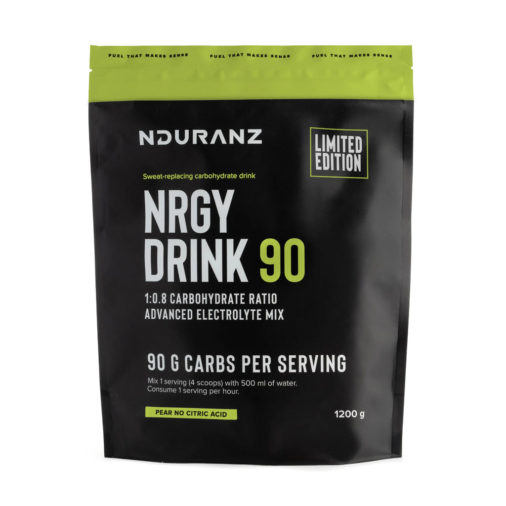 Nrgy Drink 90 es una bebida deportiva adaptada para una mayor ingesta energética. Aunque ofrece la misma cantidad de CHO por cucharada (22,5 g) que Nrgy Drink, la cantidad de electrolitos y la intensidad del sabor están adaptadas a la mayor cantidad en una sola botella.