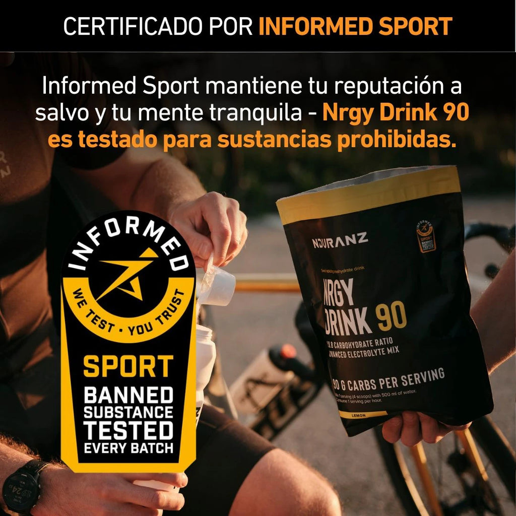Cada lote de Nrgy Drink 90 está testeado para sustancias prohibidas bajo el programa Informed Sport. Esto significa que puedes alimentarte con confianza — tu rendimiento se mantiene limpio y tu reputación segura.